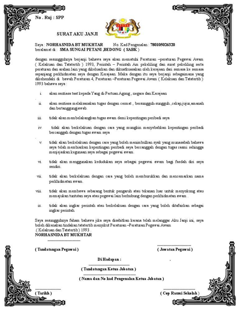 Contoh Surat Aku Janji Perkhidmatan Awam